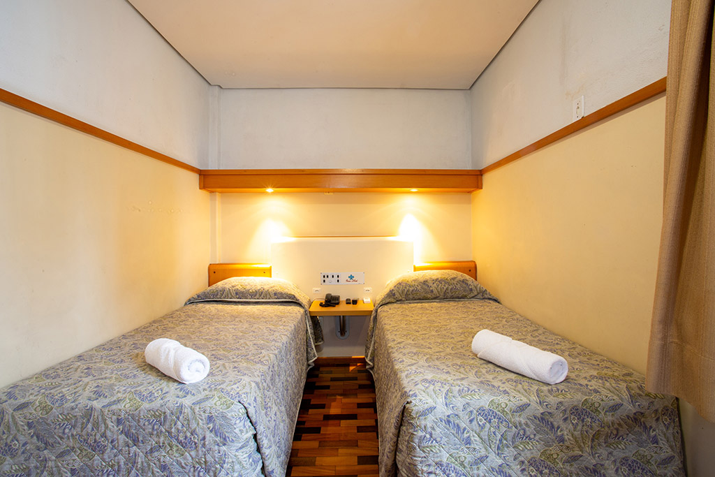 Com ambientes confortáveis e bem cuidados, nossos quartos oferecem tudo o que você precisa para descansar com tranquilidade e se sentir em casa. Todos contam com ar-condicionado, TV, frigobar, cofre individual, telefone e Wi-Fi gratuito, além de banheiro privativo e camas tipo box que garantem o máximo de conforto.