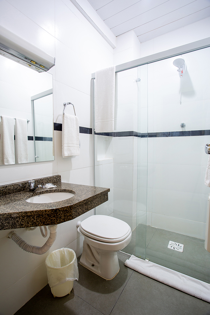 O hotel disponibiliza apartamento triplo solteiro que pode ser convertido em triplo casal que é montado com uma cama de casal e uma de solteiro, ideal para família com um filho ou casal com um acompanhante. Necessário informar na reserva o tipo de opção pelo casal triplo.